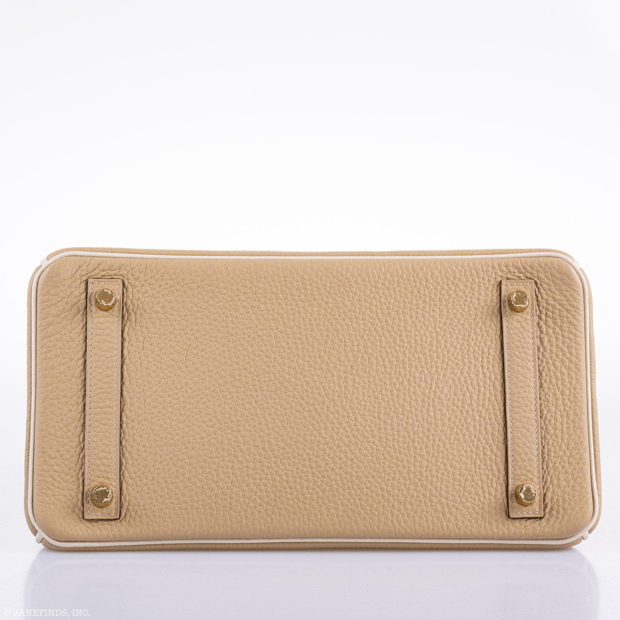 Step out in style with the iconic Hermès Birkin 30 HSS Trench & Craie Piping Togo Bag from 2016. Crafted with precision and unparalleled craftsmanship, this luxurious handbag is a true masterpiece. The beautiful combination of trench and craie colors with contrasting piping adds a touch of sophistication to any outfit. Made from high-quality Togo leather, this bag is not only stylish but also durable, ensuring it lasts a lifetime.