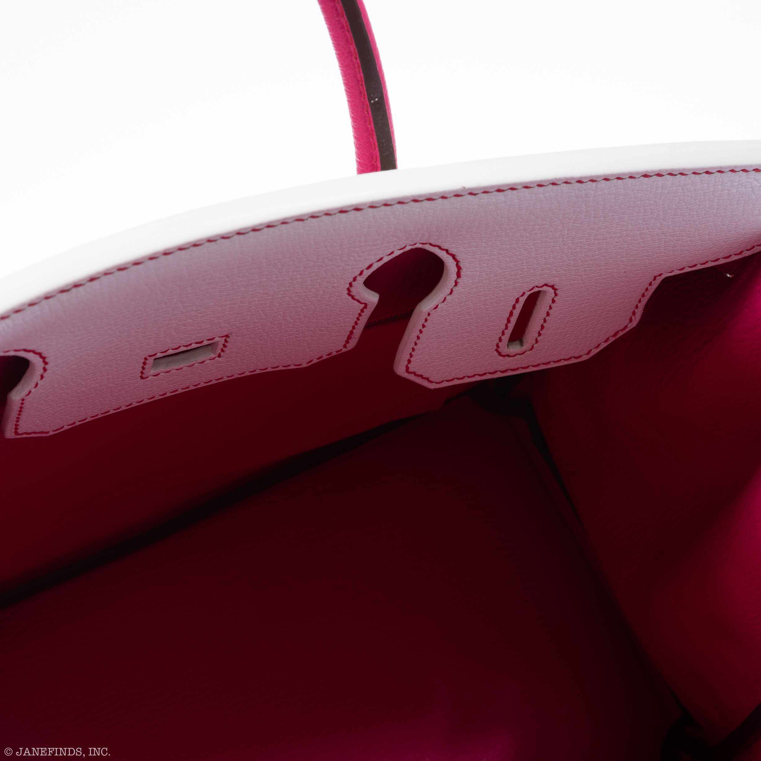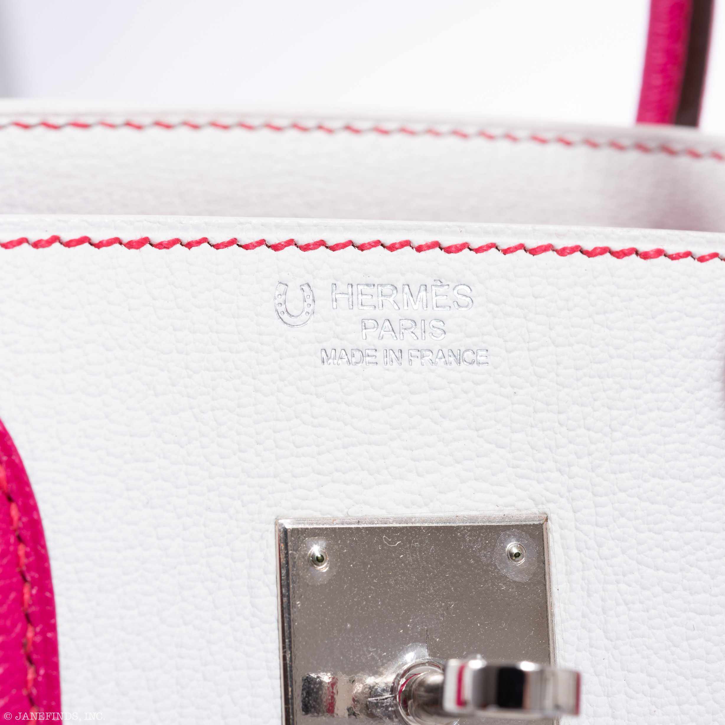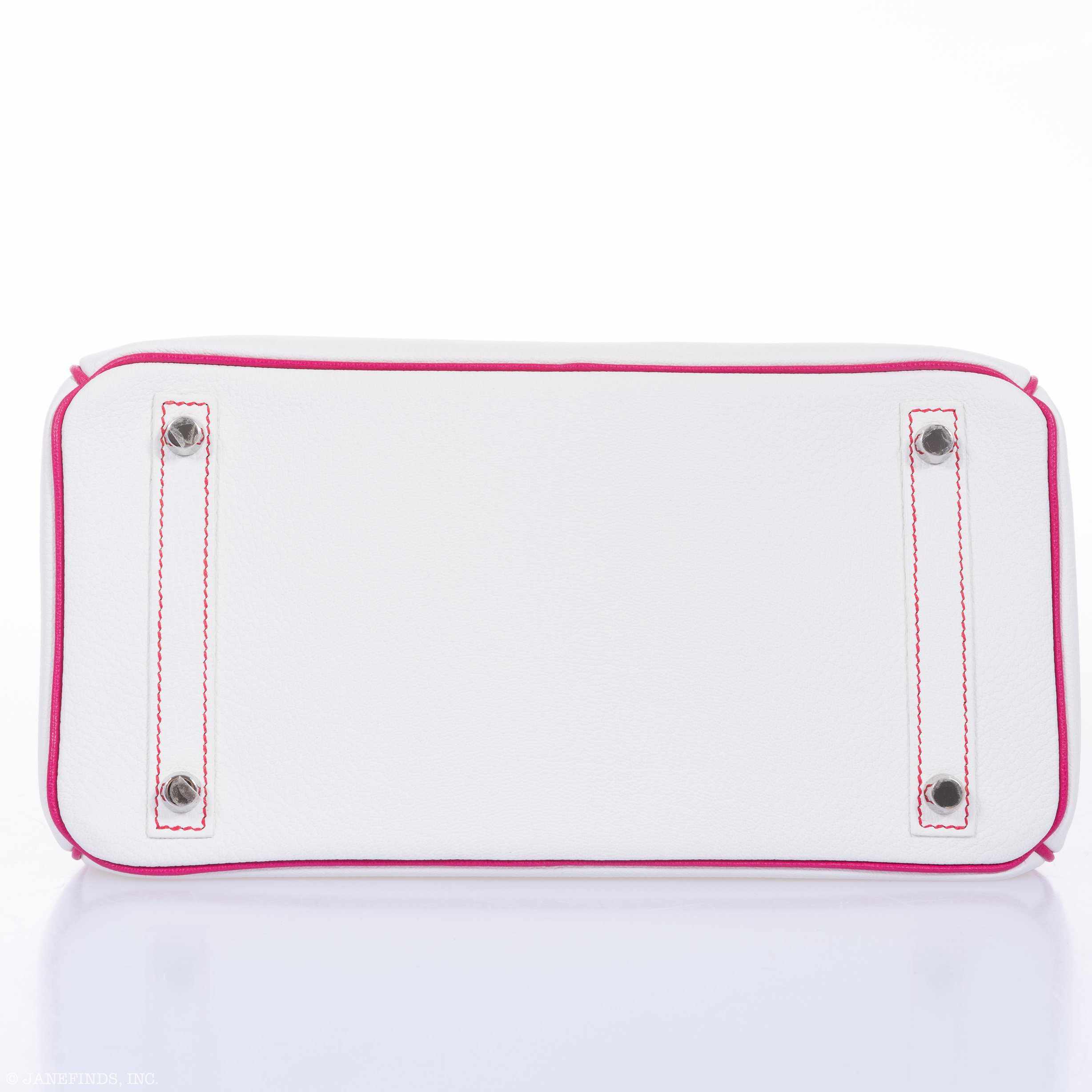 Elegance meets sophistication with the Hermès Birkin 30 HSS in White & Fuchsia. Crafted from luxurious Chevre leather and adorned with Palladium hardware, this iconic handbag is a symbol of timeless style and impeccable craftsmanship. The striking contrast between the pristine white and vibrant fuchsia colors makes a bold fashion statement, perfect for those who dare to stand out.