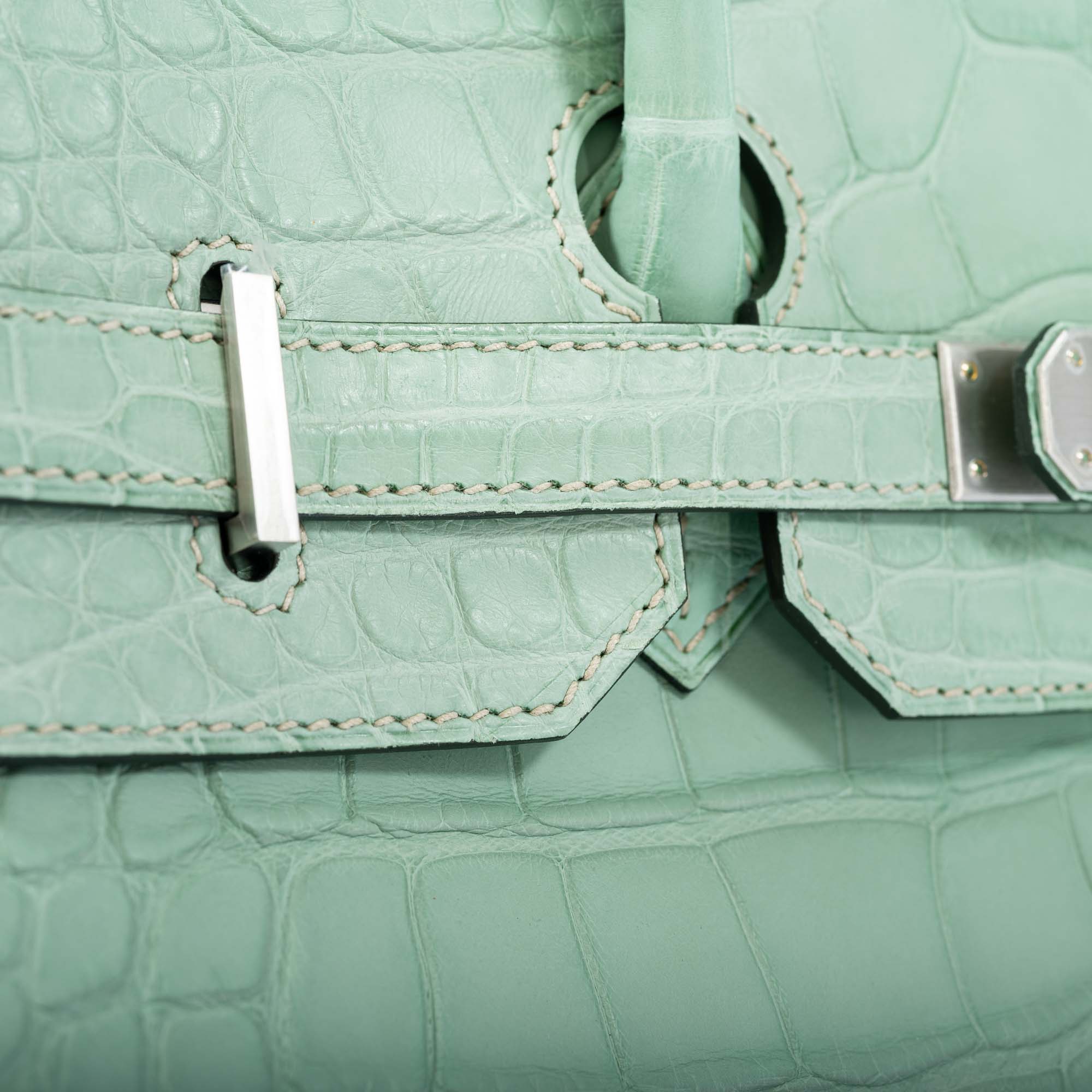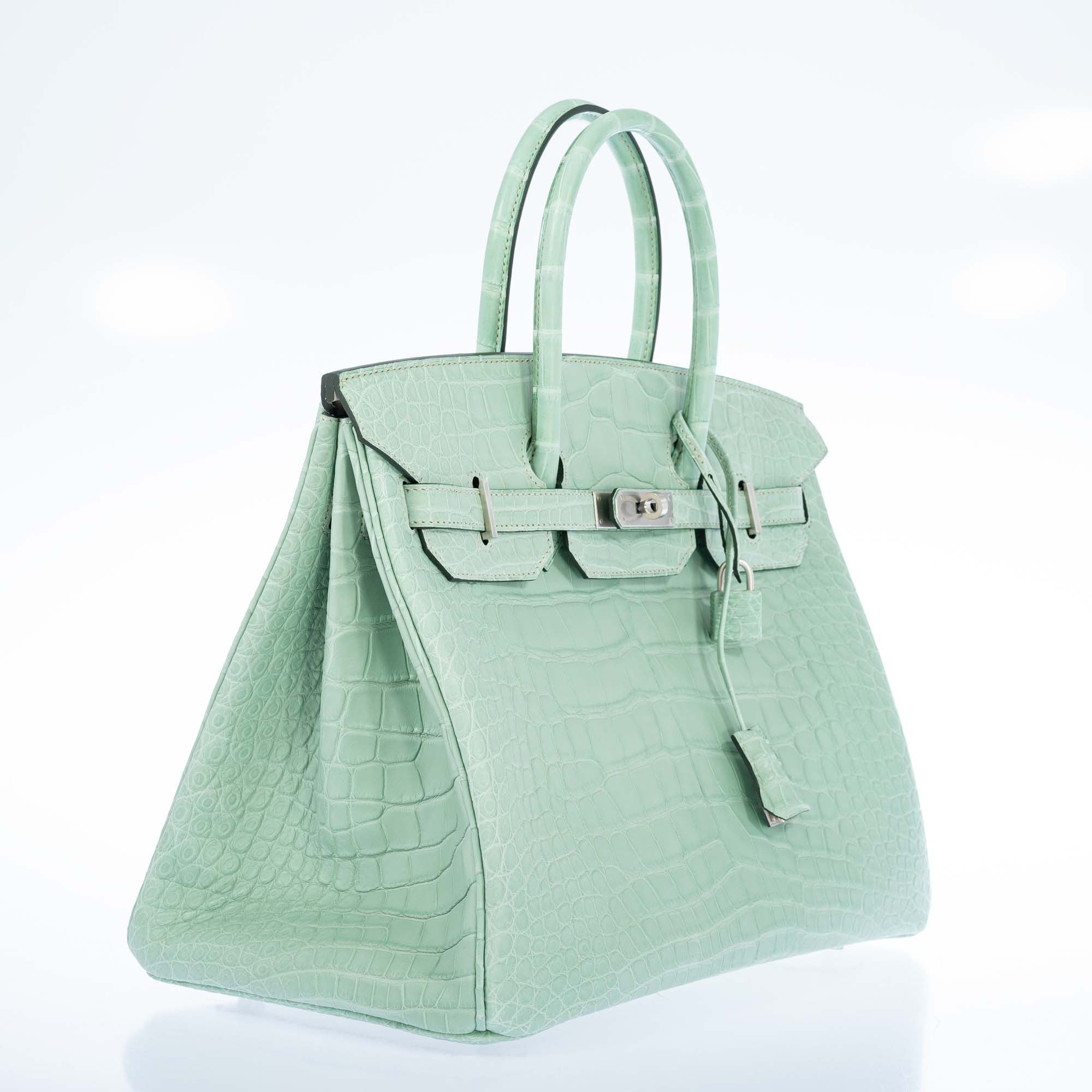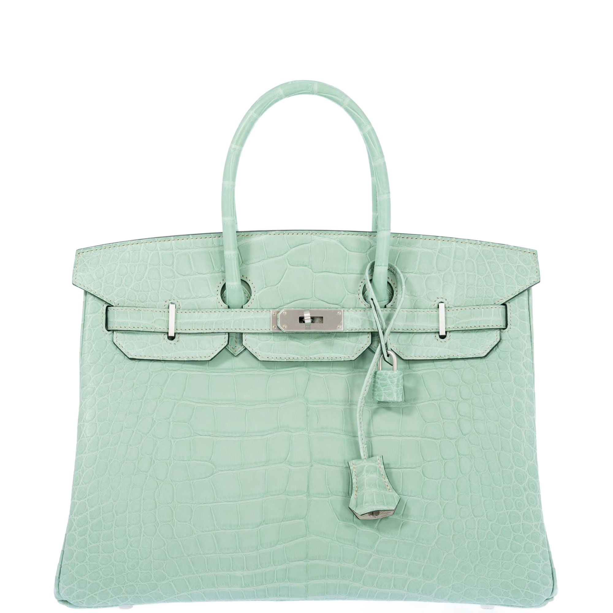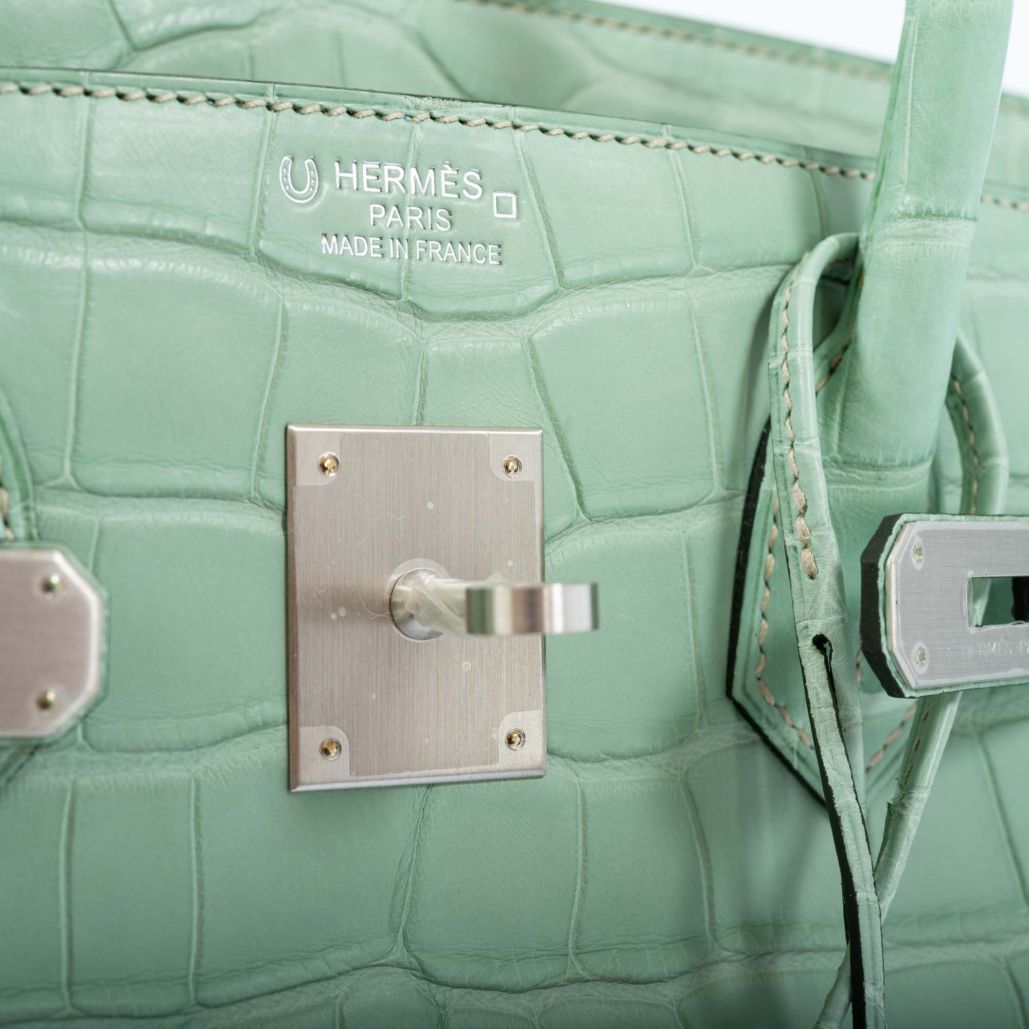 Indulge in luxury with the exquisite Hermès Birkin 35 HSS Alligator Bag in the stunning Vert D’Eau/Gris Perle color combination enhanced with Palladium Hardware. Crafted to perfection, this iconic bag exudes elegance and sophistication in every detail. The alligator leather adds a touch of opulence, making it a statement piece that elevates any outfit.