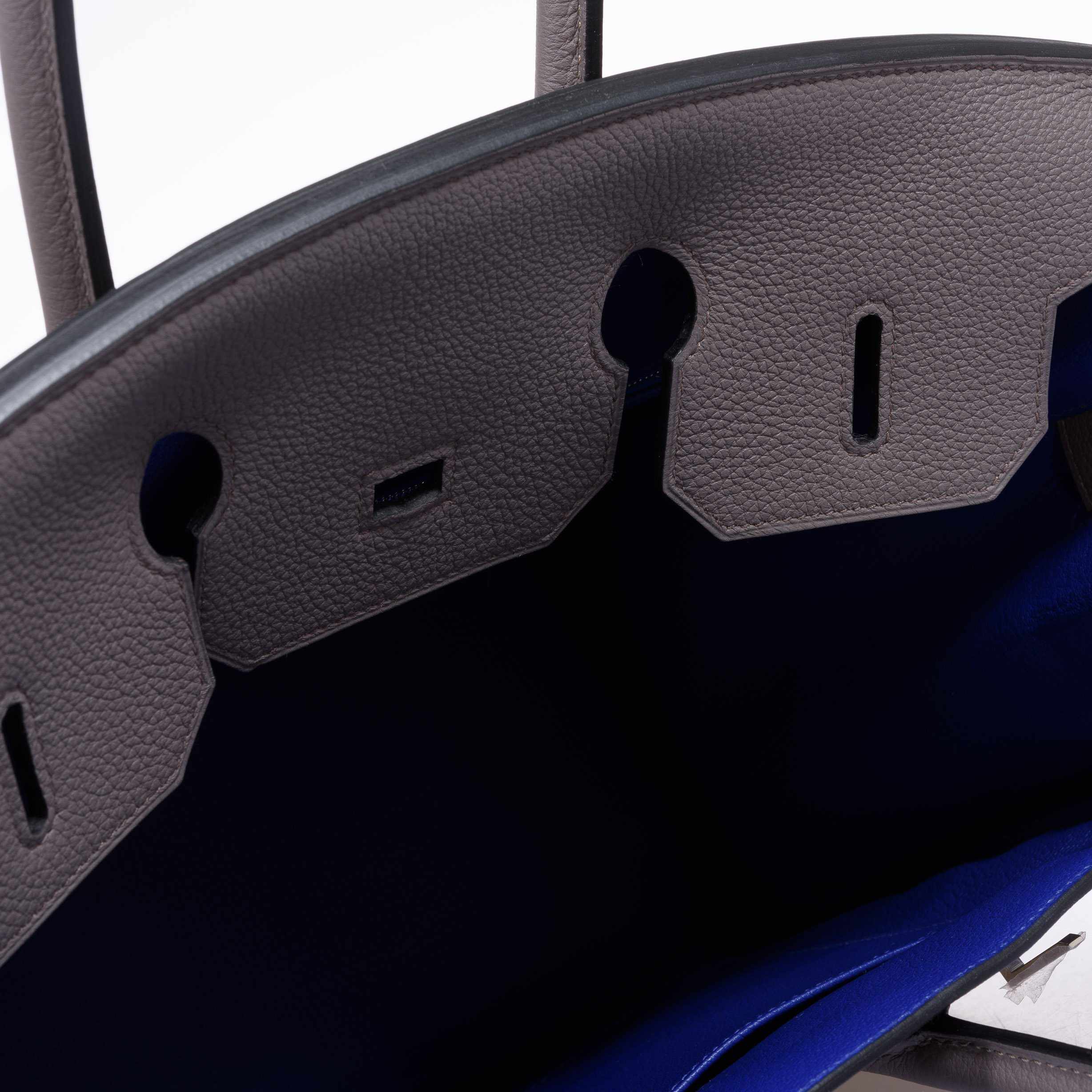 The rich blue hue of the Etain Blue Electric leather exudes elegance and class, while the Palladium Hardware adds a touch of modernity and luxury. Whether you’re heading to a business meeting or a night out on the town, this Birkin 35 is sure to elevate your look and make a statement.