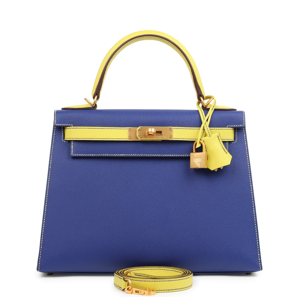 The vibrant combination of Bleu Electric & Lime Epsom leather adds a pop of color to your ensemble, making you stand out from the crowd. The Gold Hardware accents provide a touch of luxury and elevate the overall look of the bag. With its compact size and spacious interior, this Kelly Sellier 28 is perfect for carrying your essentials in style.