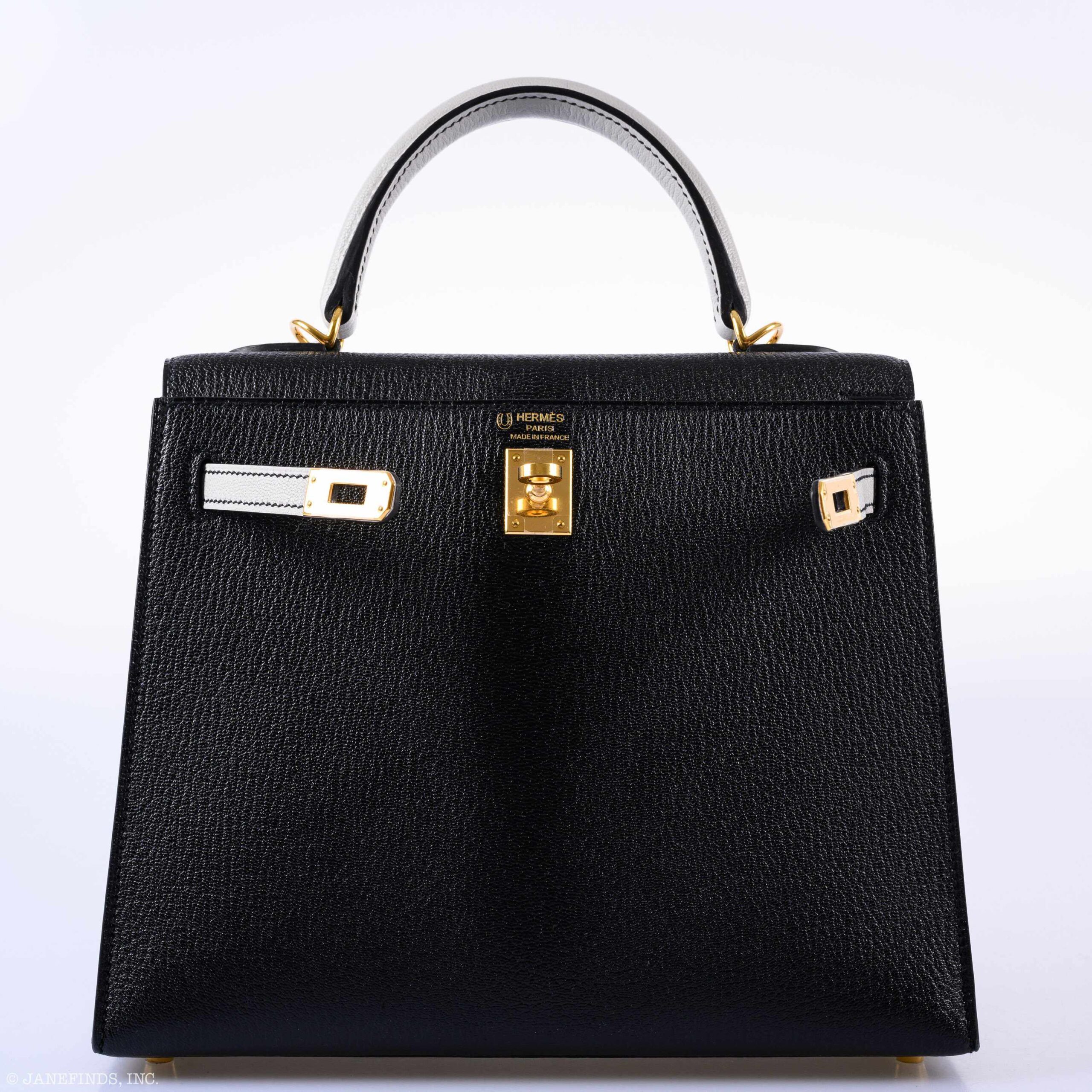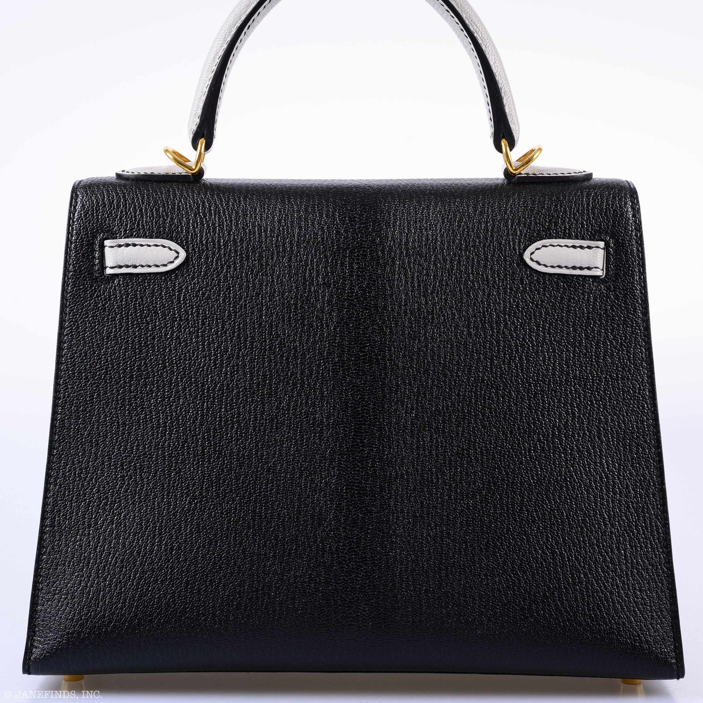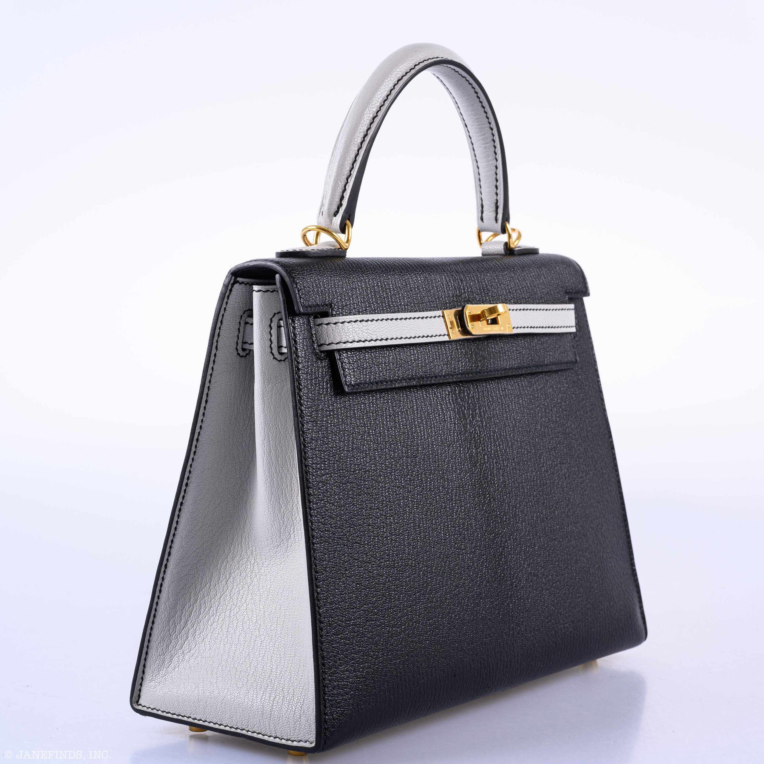 Add a touch of luxury to your collection with the Hermès Kelly 25 HSS Black & Gris Perle Chevre Gold Hardware – 2019 edition. Elevate your style and make a statement with this timeless piece that will never go out of fashion.