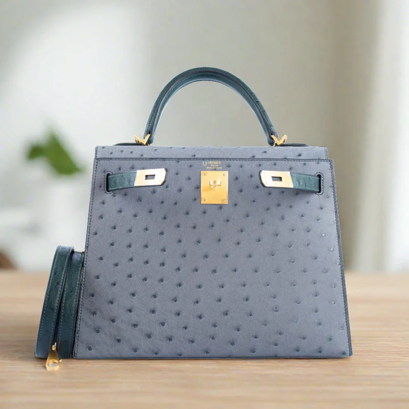 Elevate your style with the luxurious Hermès Kelly 28 HSS Ostrich Bag in Gris Agate and Vert Titien colors, adorned with exquisite gold hardware. Crafted with precision and unparalleled artistry, this iconic handbag is a true statement piece for the fashion-forward individual. The blend of rich ostrich leather and vibrant hues creates a stunning visual appeal that is bound to turn heads wherever you go.
